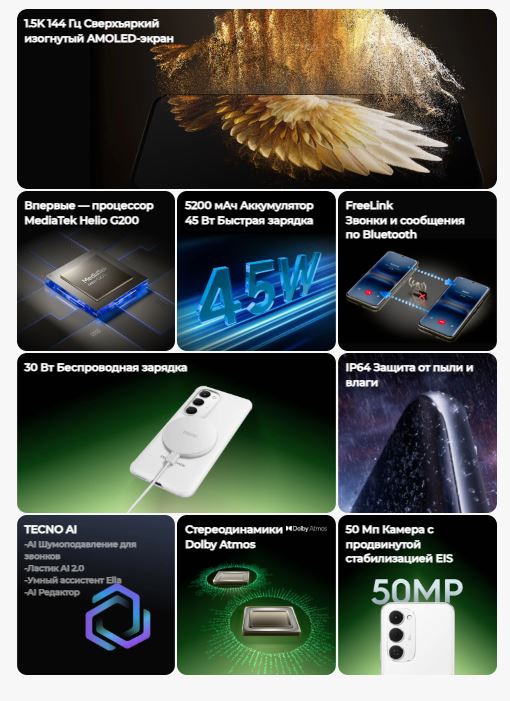Отзывы Смартфон Tecno Spark 40 Pro+ 8/256GB Black/Черный